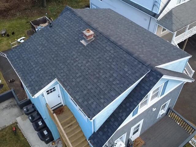 Greenwich homeowner David reached out to Brown Roofing after noticing his aging three-tab shingles and failing chimney flashing. Inspector Lyndsie assessed the roof and confirmed it was time for an upgrade. Project Manager Noel and the crew removed the old roofing, replaced damaged sections of plywood with new CDX decking, and installed a full underlayment system for maximum protection. The new roof was finished with IKO Dynasty shingles in Granite Black and fresh metal chimney flashing for a clean, watertight seal. David’s home now has a sleek, durable roofing system built to stand strong and look great.