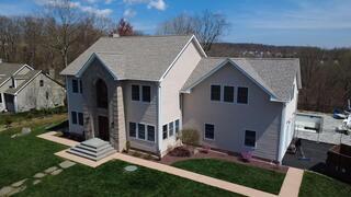 Now it's time to install the brand-new IKO Dynasty shingles! These premium-laminated, architectural shingles are proudly backed by Brown Roofing's 50-year warranty. Karen has selected the shade of Biscayne to beautiful complement her cream-colored home.